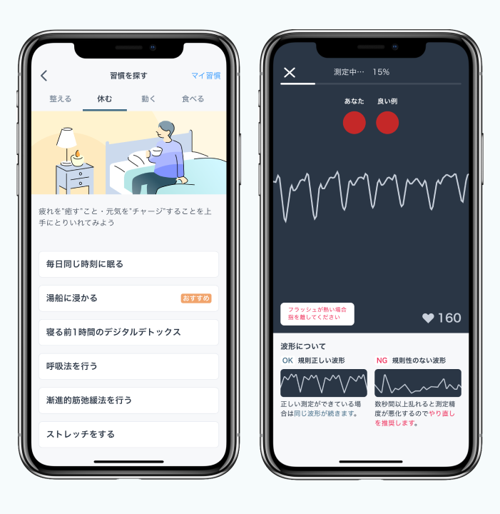 そんな同社が開発したのが、心拍変動(HRV:Heart Rate Variability: )を解析する手法を用い、スマートフォンのカメラから読み取った脈拍データをもとに「自律神経の状態を分析する技術」だ。2013年に開発して以来、同社が開発するさまざまなプロダクトに導入され続けてきた。「Habitone」もこの技術を活用したプロダクトの1つだ。