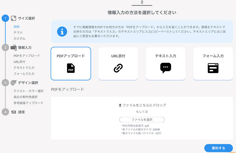 バナー作成はシンプルで、おおよそ3つの工程を踏む。まずは、「イベントの種類」「行政情報」の2つから発信の種類を選択。次に、目的にあったバナーのサイズを選ぶ。そして、バナーに記載したい情報を手入力、もしくは記載したい情報が掲載されているURLやPDFを貼るだけで、2パターンのデザインが最短20分で完成する。AIは、情報の要約とデザインの2点でのみ使用される。行政が使う頻度が高い言い回しや典型文を活用するうえ、悪目立ちしない、お金のマークを使用しないなど、行政に好まれるデザインを生成するアルゴリズムを組むことで、使用しやすいツールになっている。生成されたデザインはすべてPOTETO Designのデザイナーがファクトチェックをするほか、ユーザーのリクエストに応じて修正をおこなうため、品質も担保されている。