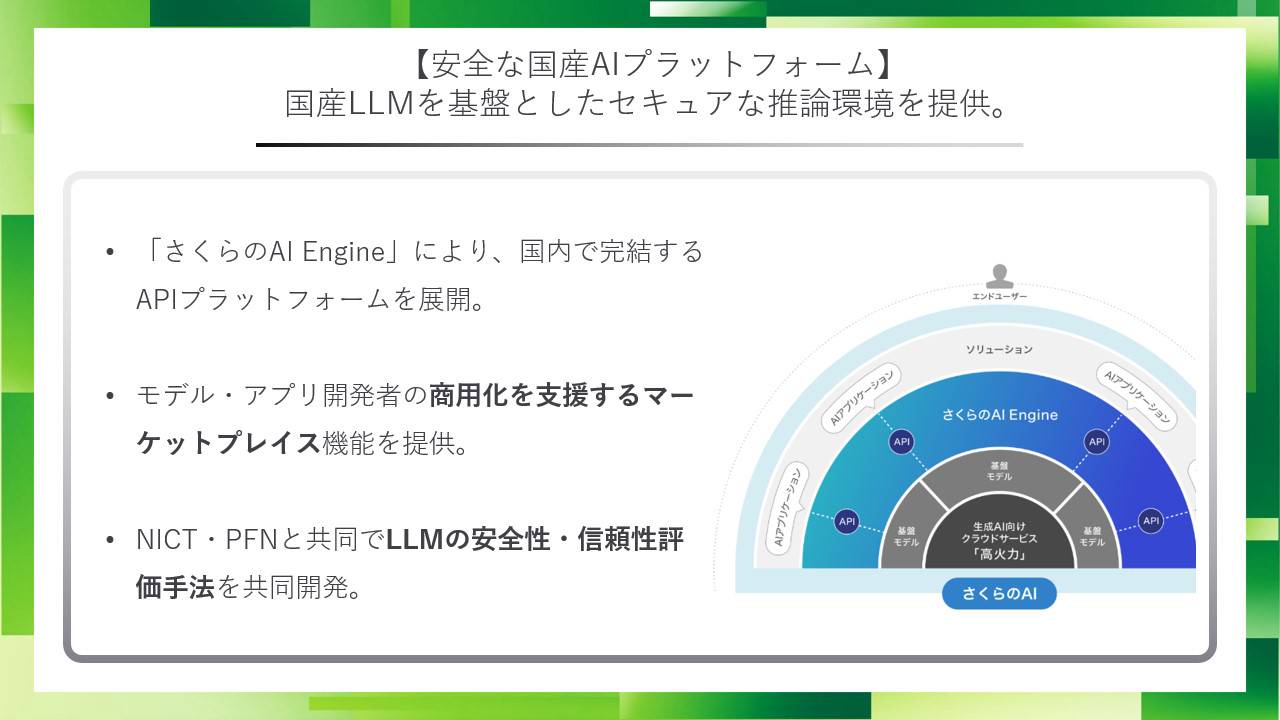安心して日本のデータをフル活用できる、信頼できるAIの確立を目指しているのが、「さくらのAI」ブランドです。