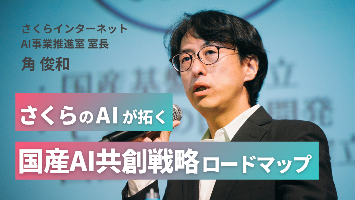2025年12月11日に開催された、国産AIの共創をテーマにしたさくらインターネット初のカンファレンス「SAKURA AI Conference」内にて、さくらインターネット株式会社 AI事業推進室 室長 角 俊和が登壇。「さくらのAIが拓く、国産AI共創戦略ロードマップ」と題し、さくらインターネットが描くAI事業の拡大戦略、そしてパートナーと築く“日本発AIエコシステム”の全貌などについて講演しました。本記事ではその内容をレポートします。