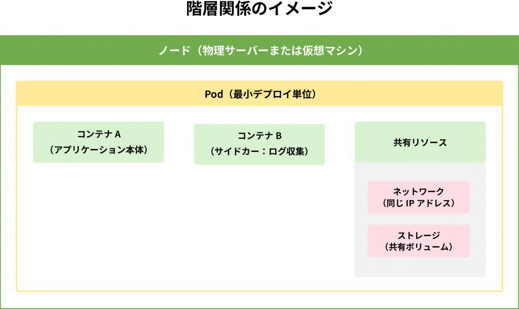 ノード → Pod → コンテナの関係性