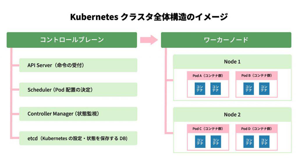 Kubernetesがどのような構造で動作し、どのようにコンテナを管理しているのかを理解することで、導入時のイメージが明確になります。ここでは、Kubernetesの基本的な仕組みと構成要素を解説します。